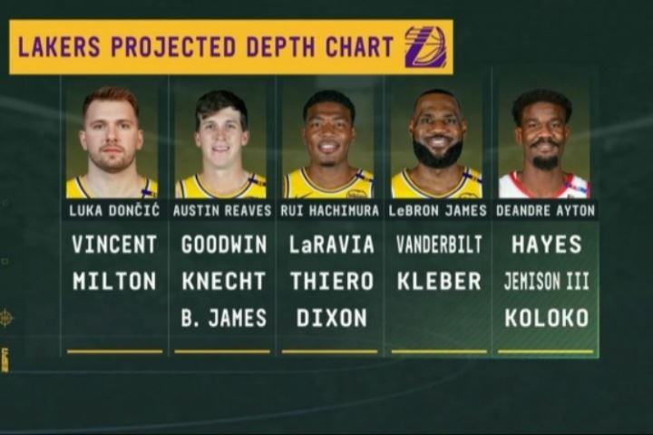 比赛期间转播方晒出湖人目前的阵容深度:
