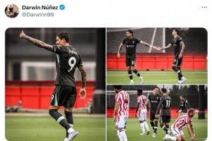 本场比赛,努涅斯首发出战,上半场上演帽子戏法。赛后,他在社交媒体晒出比赛照片,庆祝球队获胜。