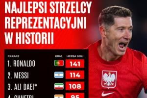国家队历史射手榜:C罗141球居首,梅西114球第二,莱万87球第7